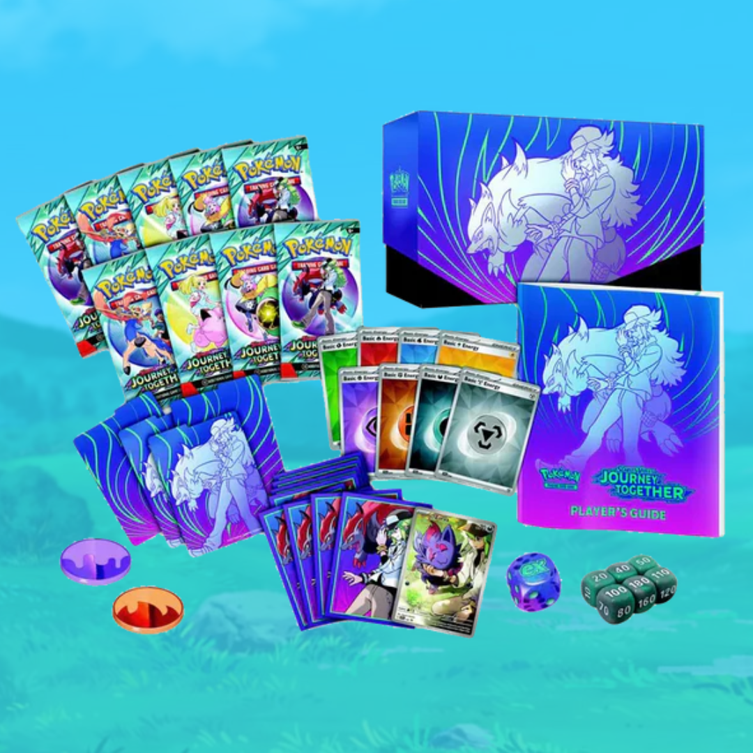 De Pokémon TCG: SV09 Journey Together – Elite Trainer Box is de perfecte manier om je avontuur te starten! Deze box biedt alles wat je nodig hebt om je collectie uit te breiden en je deck te verbeteren. Met boosters, promo kaarten en handige accessoires ben je klaar voor je volgende Pokémon gevecht.